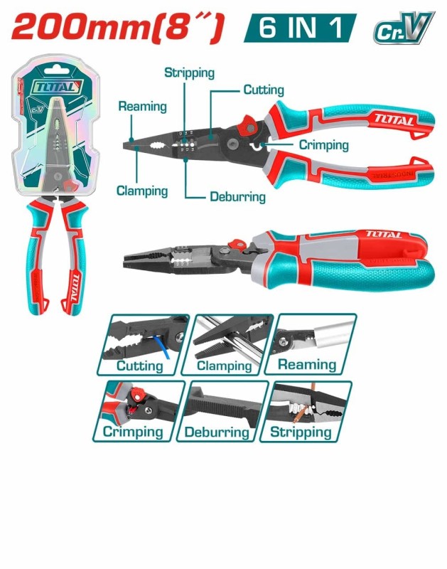 6 en 1: corte, sujeción, crimpeado, escariado, desbarbado, pelado.