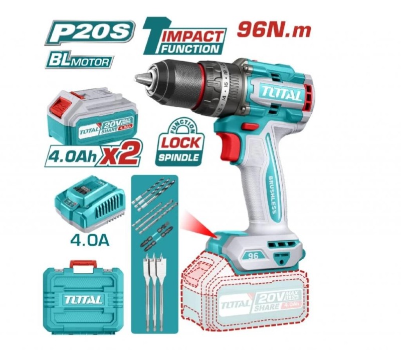 Atornillador inalámbrico TOTAL sin escobillas 20 V 96 NM