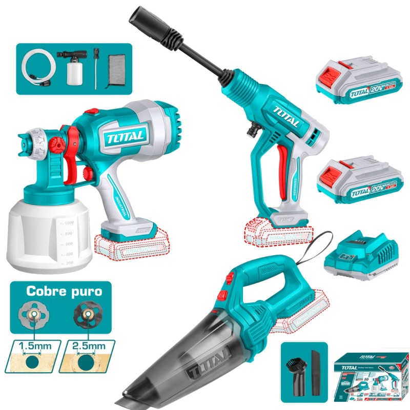 COMBO 20V PISTOLA PINTAR + LAVADORA + ASPIRADORA 2X2.0AH + ACC EDICION LIMIT.