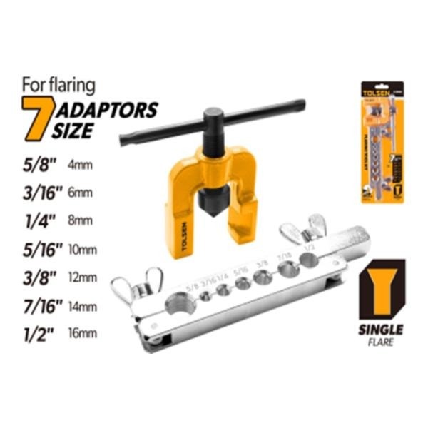 - Para abocardar 7 tamaños de adaptadores: 5/8″, 3/16″, 1/4″, 5/16″,3/8″, 7/16″, 1/2″ (4, 6, 8, 10, 12, 14, 16 mm)