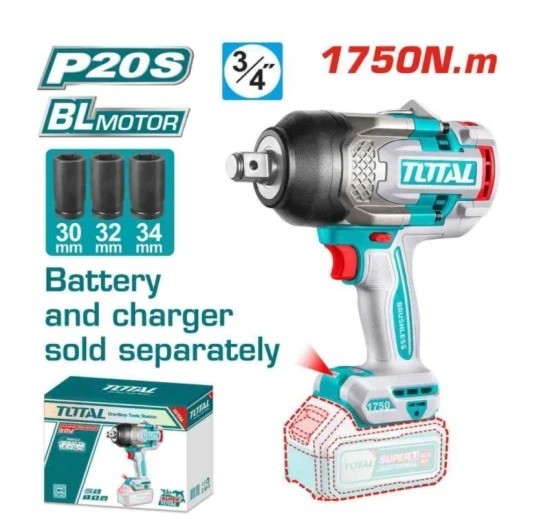 LLAVE DE IMPACTO A BATERÍA 20V TOTAL 1750NM BL 3/4 SIN BAT