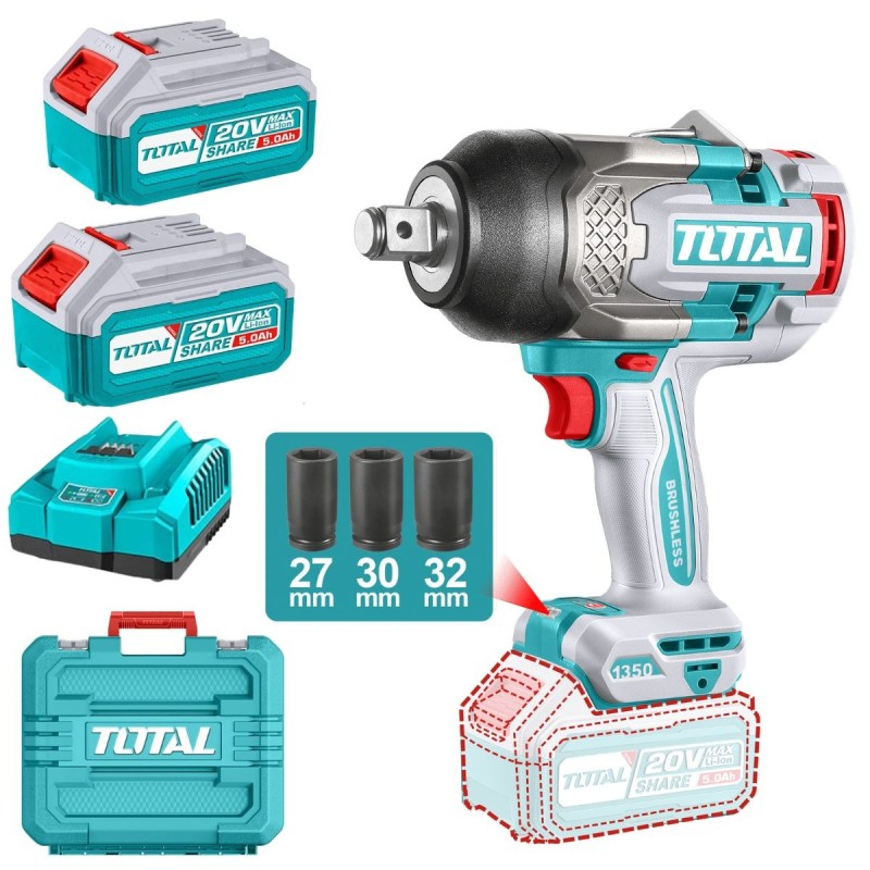 LLAVE IMPACTO BRUSHLESS 20V 1350NM 3/4” 2200BPM BRUSHLESS 2X5.0AH MALETIN+ACC INDUSTRIAL