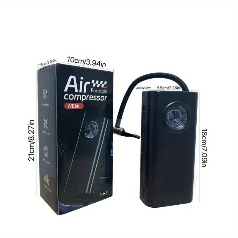 3000mAh, Usos para coche, motocicleta, bicicleta, baloncesto, piscina - Ideal para viajes, camping y actividades al aire libre, bomba de aire portátil