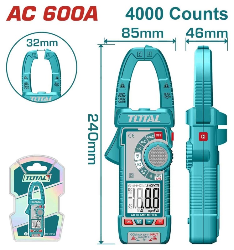Pinza Amperimetrica AC Digital 4000 cuentas 600V