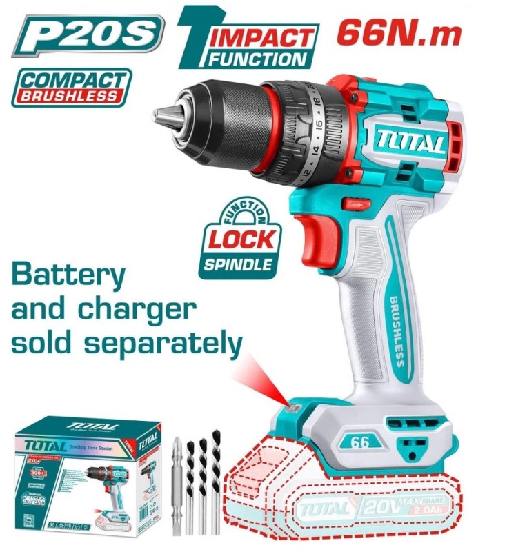 TALADRO DE IMPACTO (PERCUTOR) A BATERIA 20V 66NM SIN BAT TOTAL